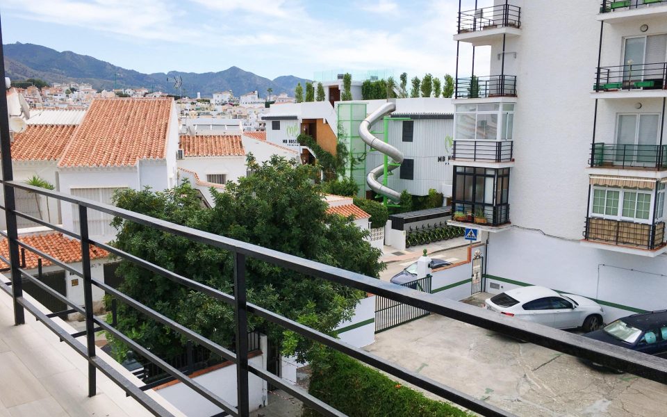 Bonito apartamento de 2 dormitorios recién reformado en una ubicación ideal en la zona del Parador, a poca distancia (10 minutos andando) de la playa de Burriana y del centro del pueblo.~La propiedad está situada en el segundo planta (con ascensor) de un bloque de apartamentos muy bien mantenido y consta de un espacioso y luminoso salón-comedor de planta abierta con aire acondicionado y acceso directo al balcón – terraza que envuelve todo el apartamento (orientación sur y oeste). con sol todo el día y vistas al mar.~~La cocina esta moderna y totalmente equipada y de estilo americana.~~Hay dos dormitorios de buen tamaño, ambos con aire acondicionado y uno de ellos con acceso directo a la terraza. Ambos dormitorios comparten un cuarto de baño moderno equipado con ducha.~~En general este encantador apartamento es perfecto por su ubicación altamente demandada, fácil acceso, tiene un excelente historial de alquiler y se vende semi-amueblado~~