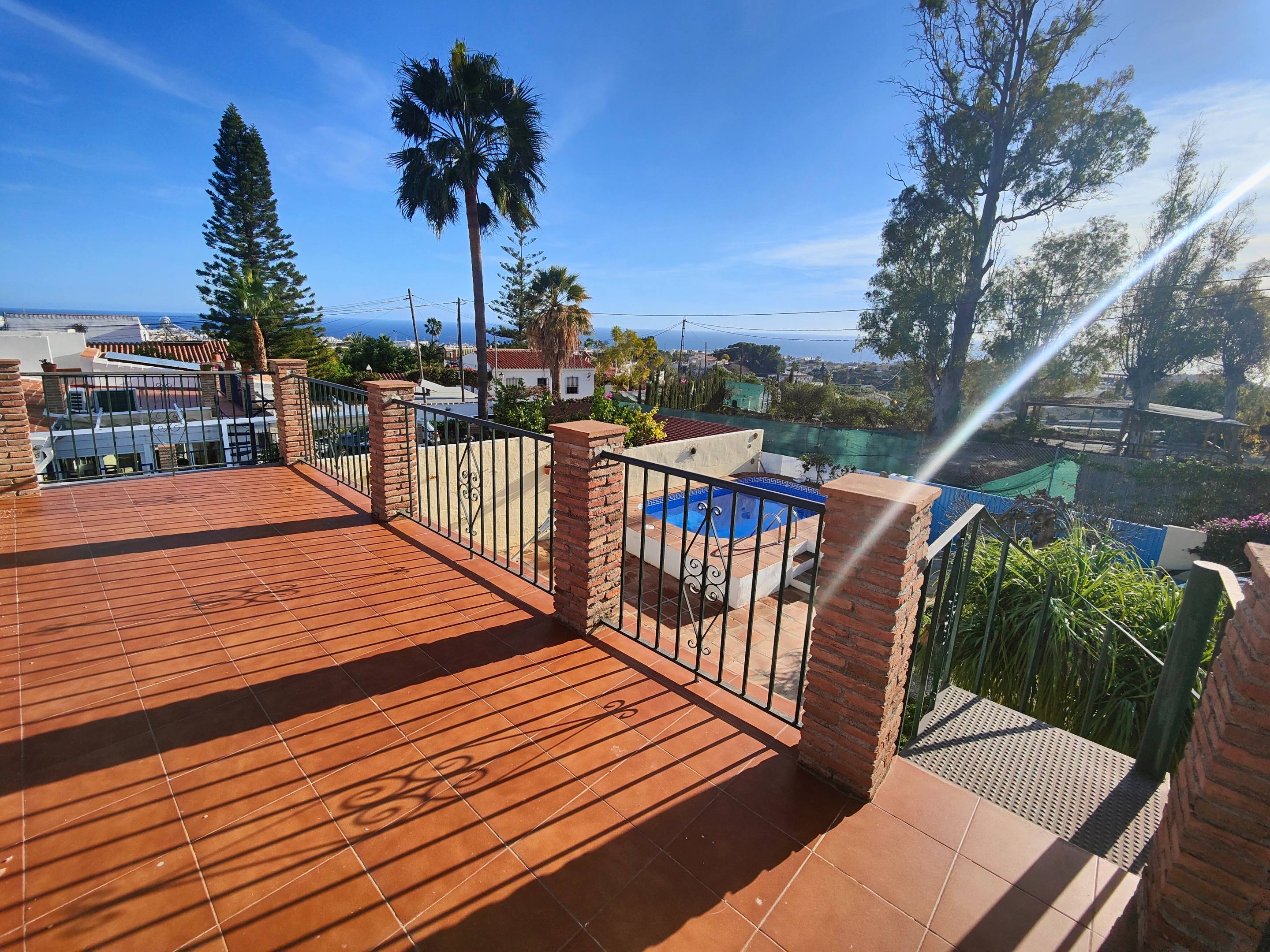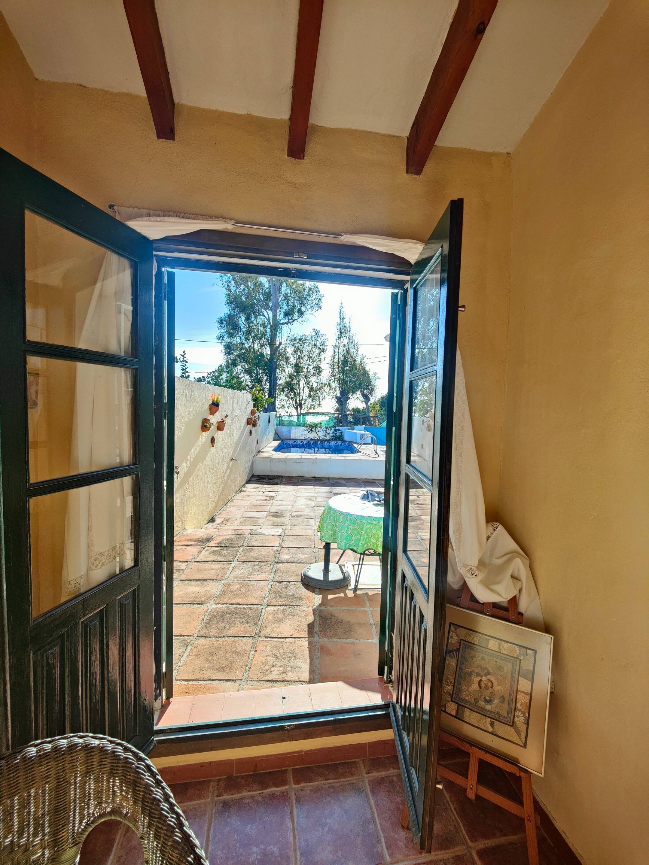 Bonita casa de campo situada a menos de 3 kilómetros de Nerja en una zona rural (Tablazos) y con fácil acceso tanto al centro de Nerja y todos los servicios locales.~Esta propiedad se encuentra en su propia parcela privada (300m2) que en la actualidad se divide en diferentes áreas, aparcamiento, jardín, terraza y piscina privada. ~La casa está construida (74m2) en un estilo típico de casa de campo española con techos de vigas y bonitas ventanas con postigos, toda la vivienda está construida en una sola planta y consta de amplio salón – comedor con gran chimenea, una cocina moderna abierta con armarios empotrados y un encimera de silestoné , está totalmente equipada con horno eléctrico, hornilla de gas, nevera grande – congelador, lavavajillas y microondas. ~Desde el salón hay acceso a una habitación, que en la actualidad se utiliza como una oficina, pero fácilmente podría convertirse en un tercer dormitorio, tiene techo alto precioso y acceso al jardín y terraza.~Hay dos dormitorios, una habitación matrimonio y una habitación con dos camas, ambos comparten un cuarto de baño de buen tamaño con bañera, además del cuarto de baño también hay un aseo.~En la entrada de la casa hay un hermoso porche cubierto ideal para comer al aire libre, el acceso a través de una escalera de caracol a una terraza en la azotea con vistas a la costa y a Nerja.~En la parte trasera de la propiedad hay una gran sala de almacenamiento que podría convertirse fácilmente en un dormitorio o una simple extensión de la casa principal, también hay una segunda terraza en la azotea se accede por una escalera normal y ofrece vistas de las montañas locales.~Esta es una propiedad encantadora, tiene mucho potencial y es ideal como residencia permanente o como casa de vacaciones. ~Se vende semi amueblada.~